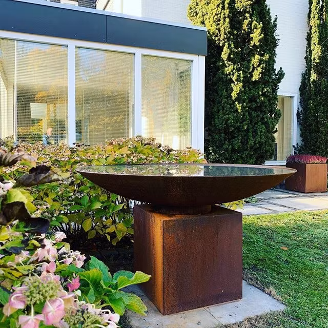 Vårat populära Eldfat i corten från CO-FIRE med en diameter om 80 cm gjord i mycket kraftig 3 mm cortenstål. Under skålen finns en bottenring som ger eldfatet ett bra stöd på olika ytor.